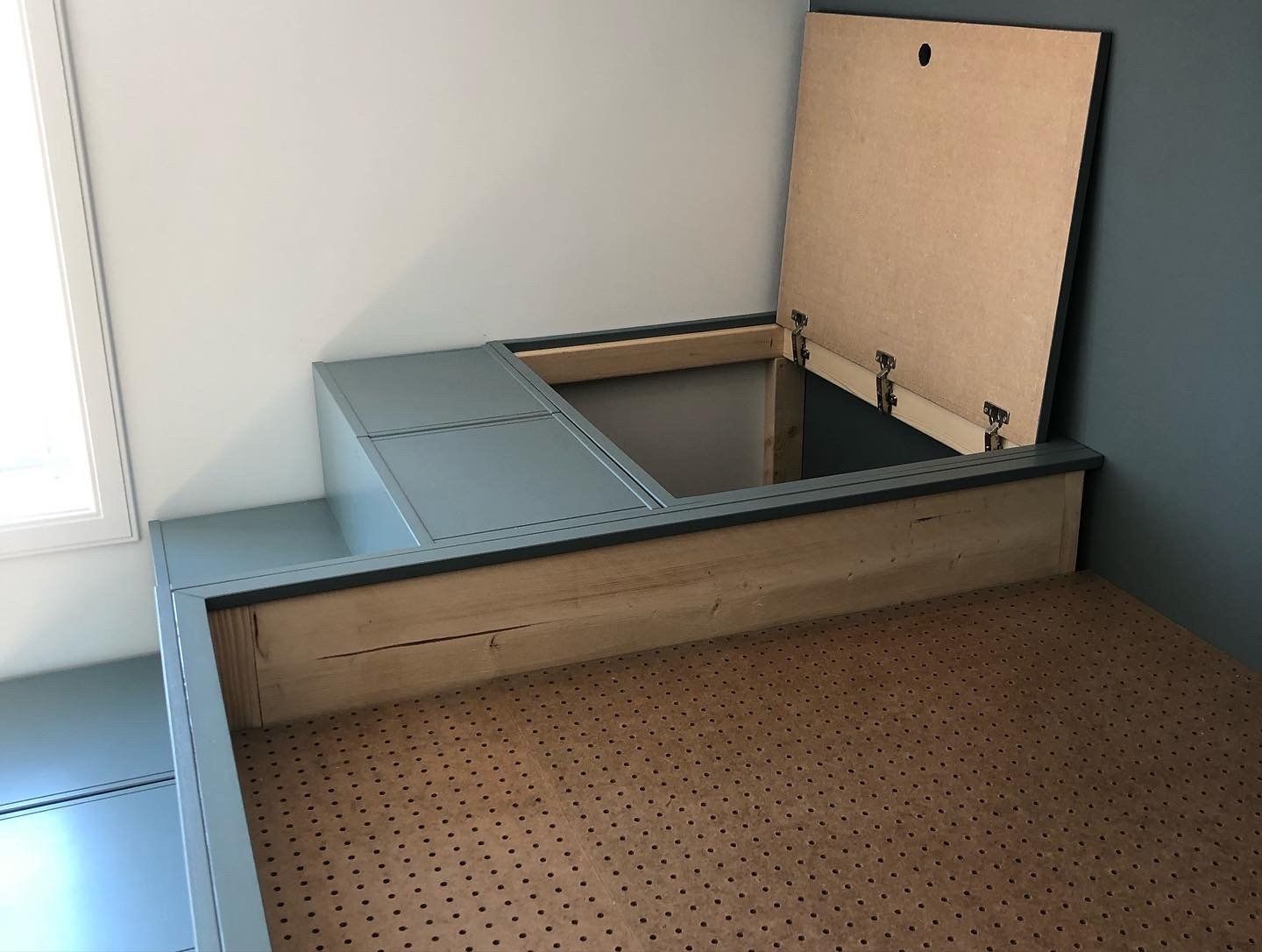 Bed with closets underneath
