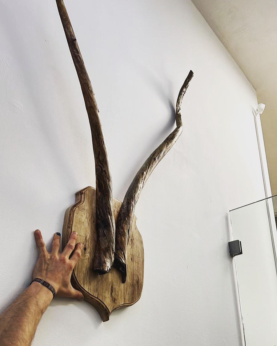 Don’t worry! It’s just a branche of a tree that I cut in 2 ✌️ Some shapes in nature look alike 🤗 the board is made of the a wooden box 📦 (all the way from China 🇨🇳) that contained a bath for washing dogs 🐩