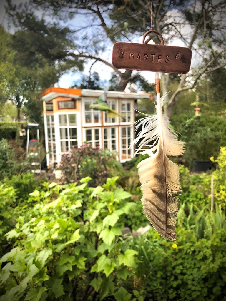 'Wabi Sabi' embodies the art of living in the present, embracing the power of imperfection and incompleteness. In this spirit (to the best of my ability and with due respect), I, along with the owner, crafted this charming cottage. What began with gently curved windows salvaged from a 1920s school building culminated in the incorporation of beautifully adorned lead strips as decorative fascia, second-hand roof panels from Aalsmeer, and stained glass windows sourced from thrift stores. Additionally, we repurposed a wall cabinet from the historic city center to adorn the area above the semi-circular doors. This project was an inspiring and playful endeavor set in a truly enchanting location. Or, as one neighbor aptly remarked, "It's like a sort of spaceship" ...?